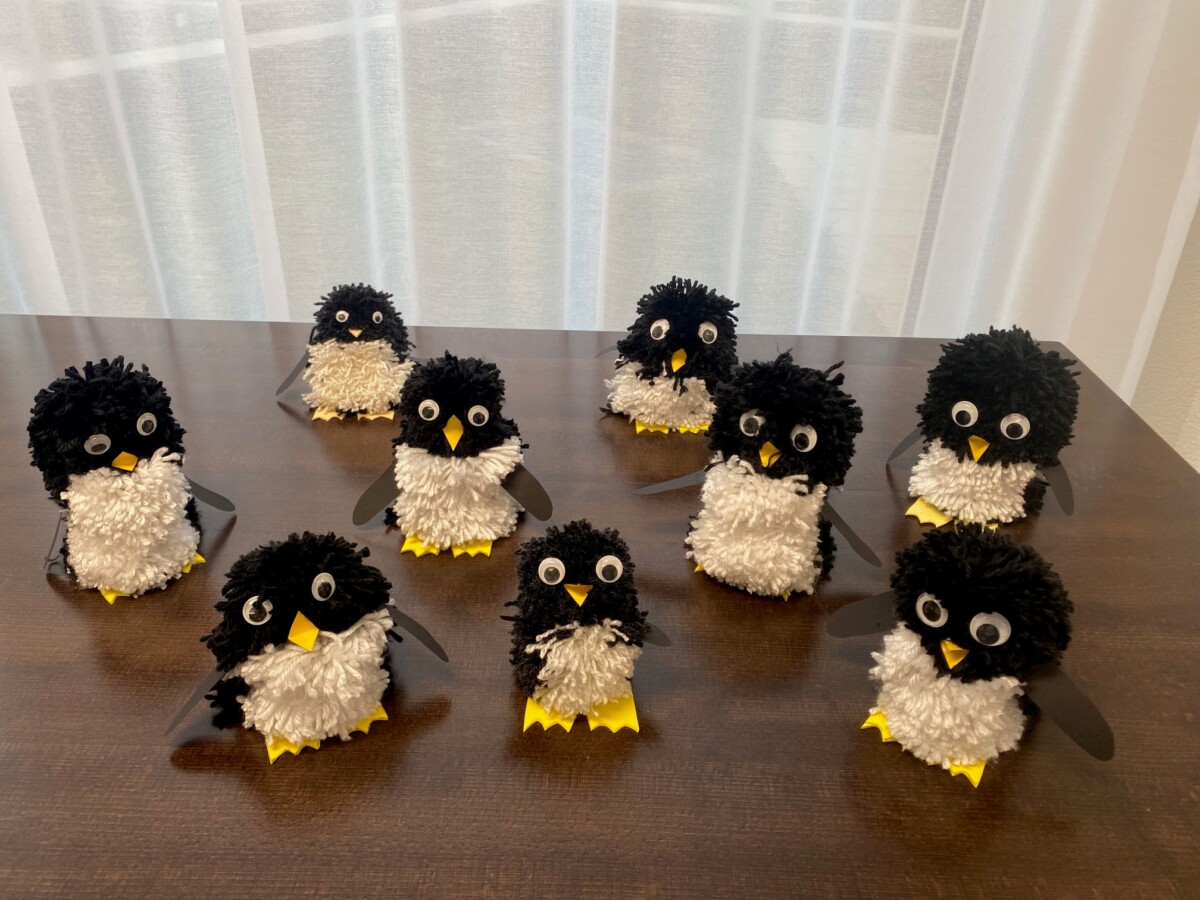 Anschliessend den Kopf mit dem Körper zusammengebunden und den Schnabel, die Flügel, Füsse und Augen aufgeklebt. Et voilà. Unsere süssen Pinguine waren für das Fotoshooting bereit.